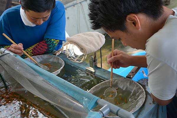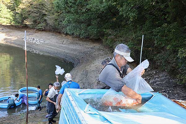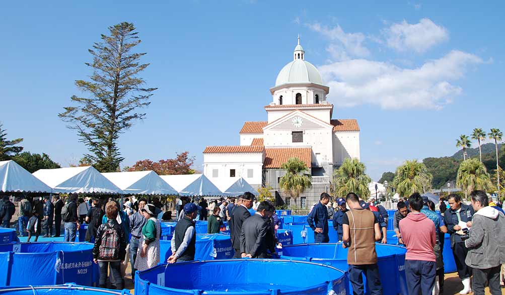 錦鯉の発祥の地・新潟県小千谷市で錦鯉を仕入れ、水槽を積んだ車で何時間もかけて広島に持ち帰りました。